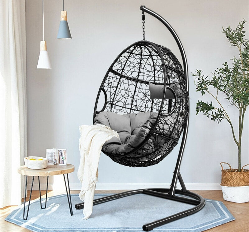 Patio Wicker Swing Chair With Stand Rain Cover Included